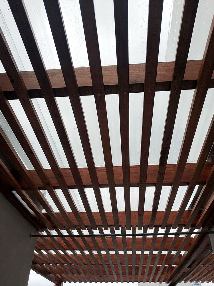 pérgola en madera y policarbonato en azotea de edificio en pocitos.